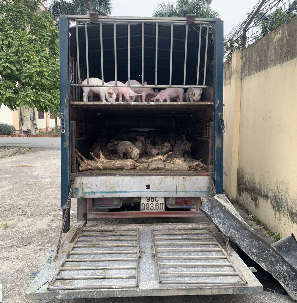 Thông tin từ Công an huyện Yên Dũng (Bắc Giang) cho biết tại Km 6, đường tỉnh 293, thuộc địa phận xã Hương Gián (Yên Dũng), Công an huyện tiến hành kiểm tra xe ô tô tải mang BKS: 98C.093.60 do Nguyễn Quang Trung (sinh năm 1983 ở Lan Mẫu, huyện Lục Nam, tỉnh Bắc Giang) điều khiển vận chuyển 200 con heo giống (trọng lượng 2.065 kg) có biểu hiện nghi vấn bị nhiễm bệnh. 200 con heo giống nhiễm dịch tả heo châu Phi.